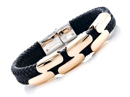 Black Braided Leather Bracelet With Gold Plated Stainless Steel Clasps And Magnetic Clasp Dimensions: Length: 8.00 Inches. Finejewelers Style Number: JK68007BL. ...